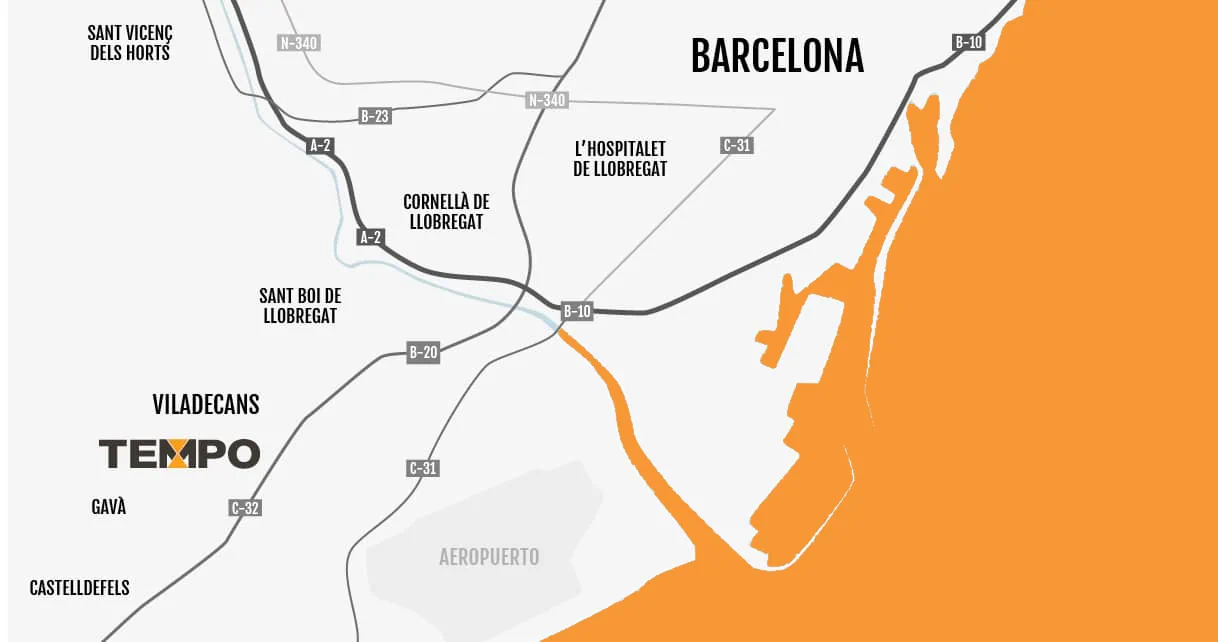 CARPINTERÍA TEMPO, S.L. Estamos en Viladecans, a 12 kms. de Barcelona y a 300 metros de la salida nº 52 de la autopista C-32 (ver  en Google Maps).